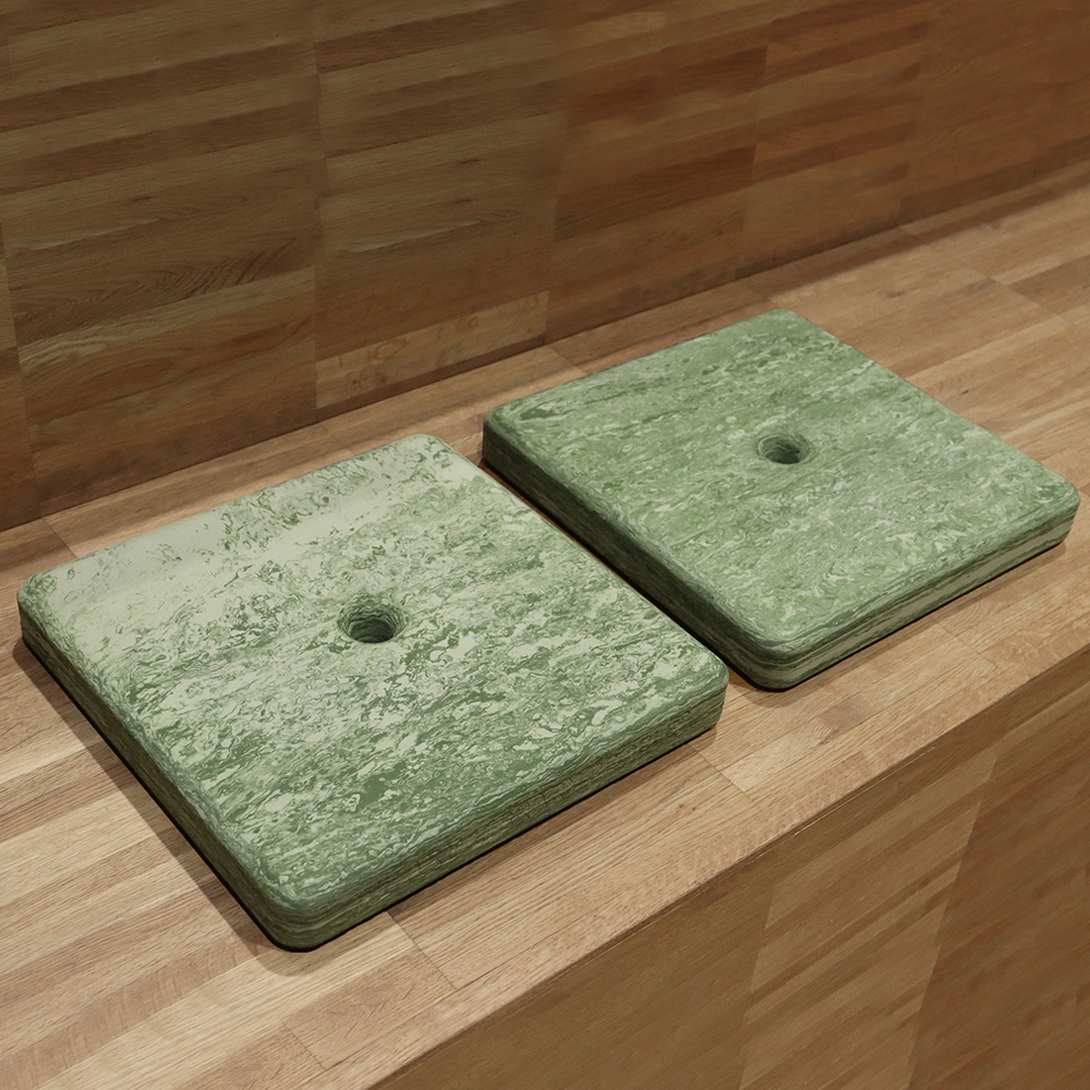 Kuddarna finns i flera marmorerade färger, inspirerade av naturen. De är idealiska att använda på golv, bänkar, trappor osv.