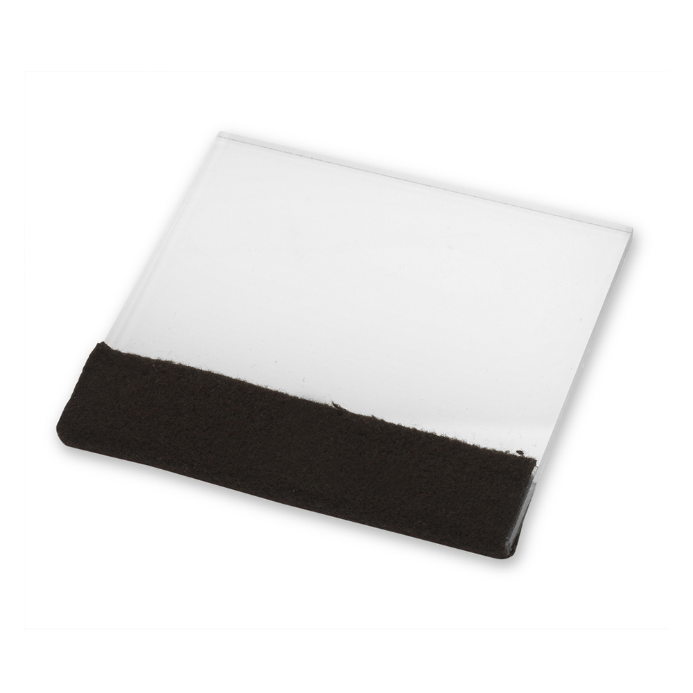 Pressar enkelt och mycket effektivt ut all luft mellan plast och bokomslag samt slätar ut veck och andra ojämnheter.