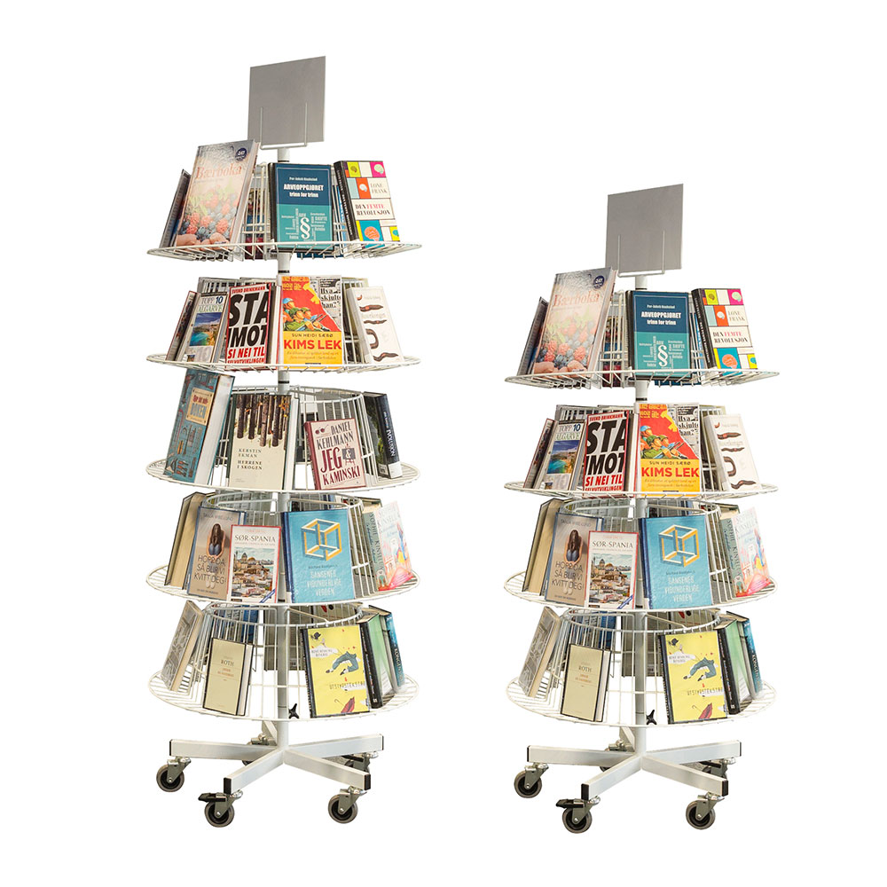Mobil frontexponering med roterande korgar. Har du begränsat utrymme och samtidigt vill använda dig av en välkänd ikon inom biblioteksvärlden är boksnurran det självklara valet!
