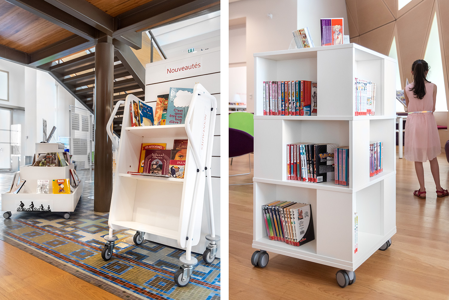 Bokvagnens lutning säkerställer effektiv förvaring och ger god översikt över de böcker du vill hantera.