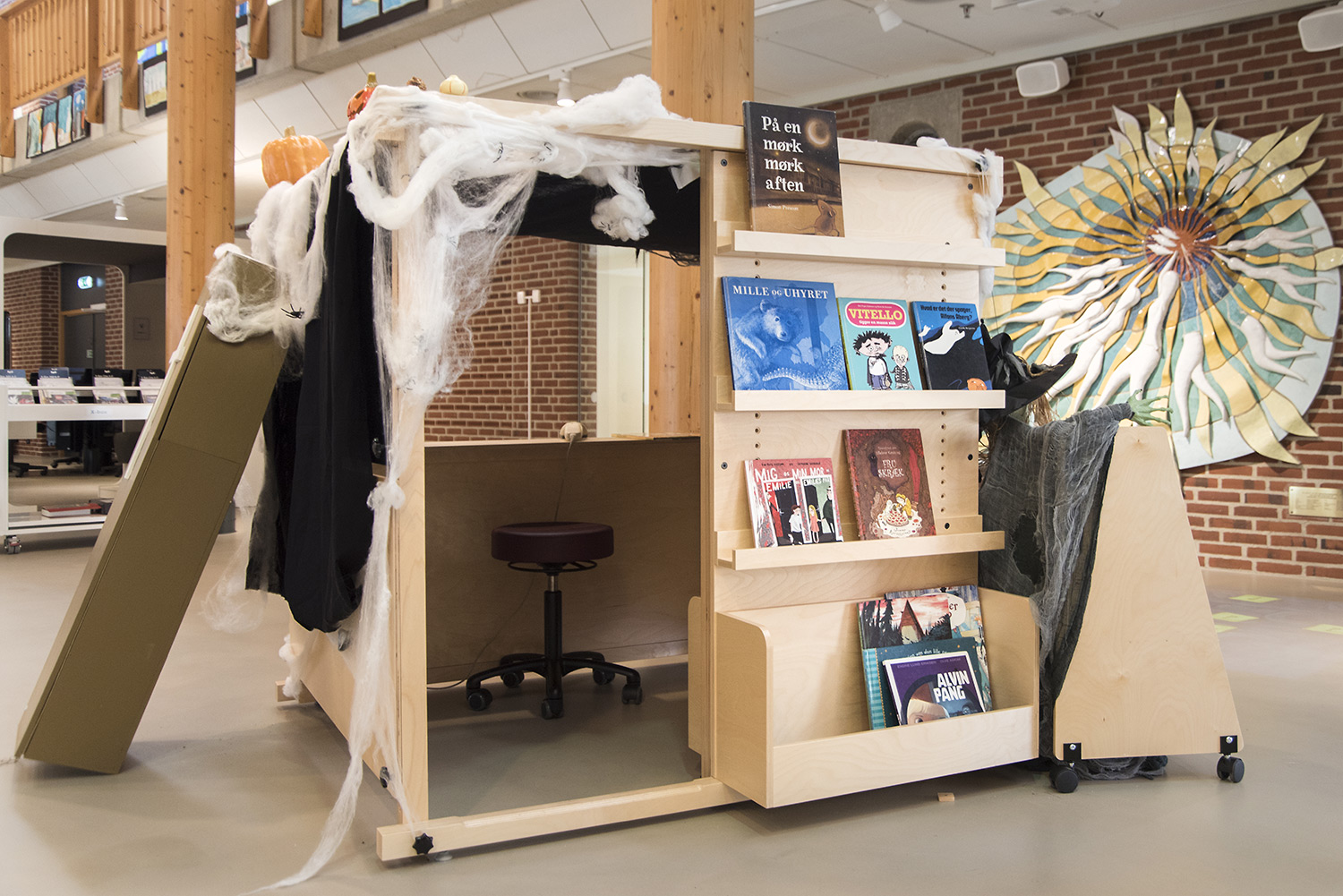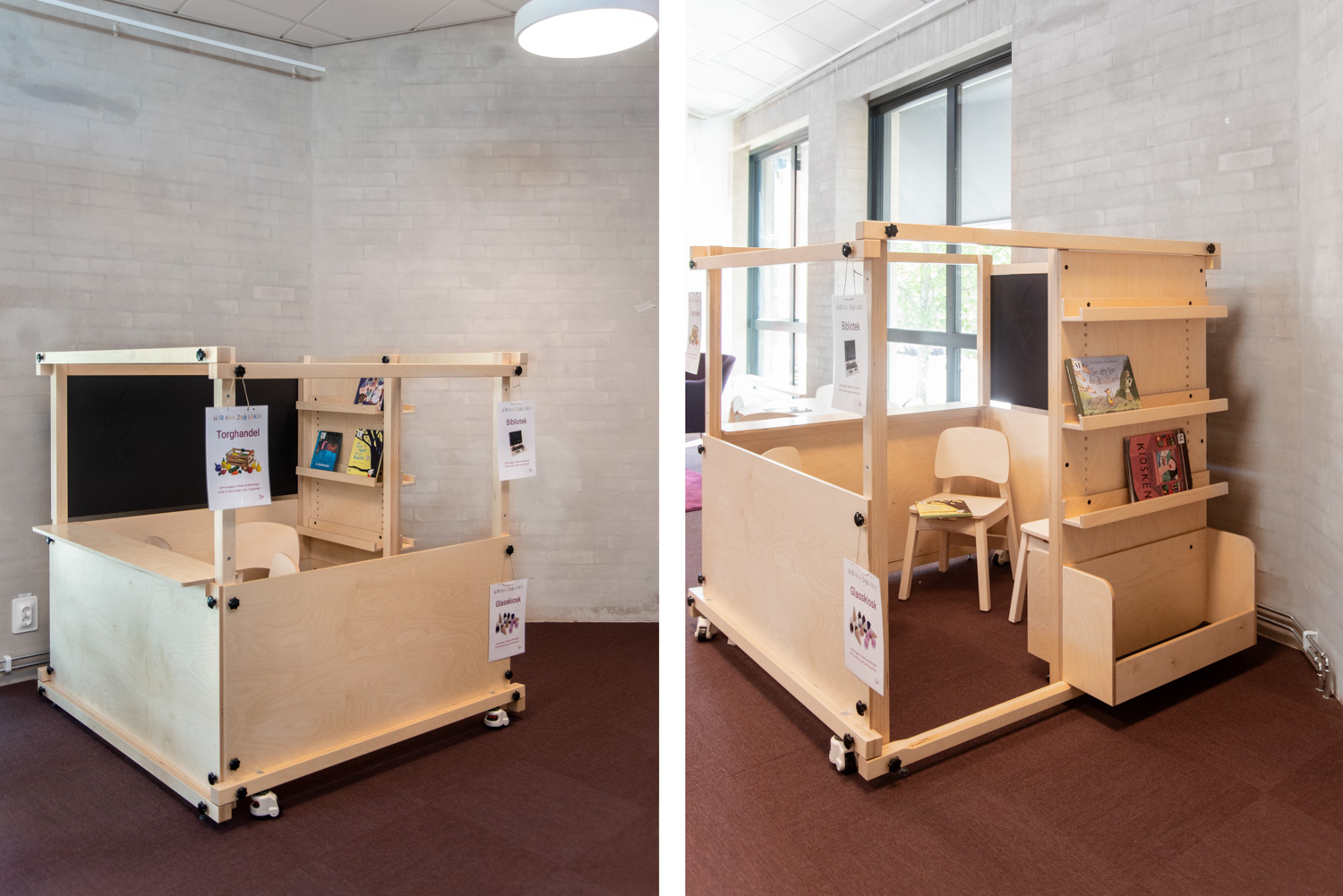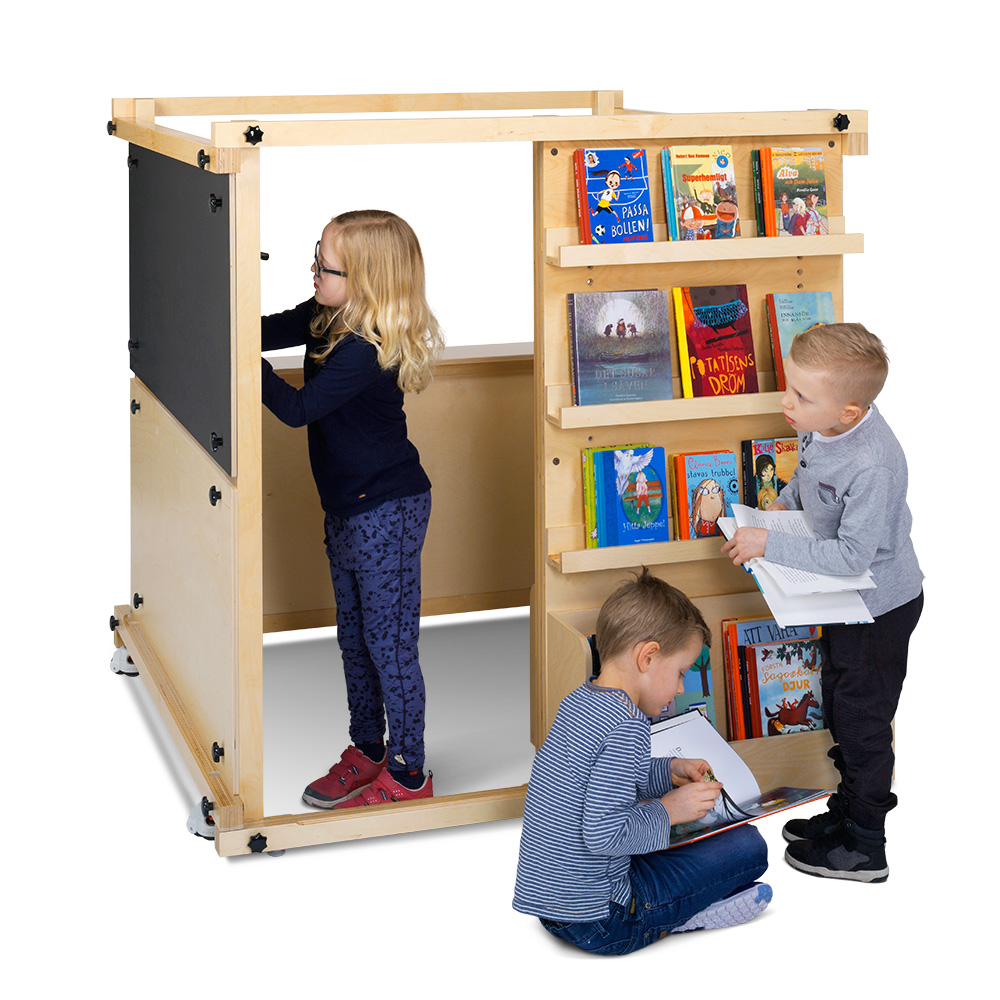 “Barnen leker för fullt i bibliotekskiosken. De leker bibliotek, bokhandel och skola. De har väldigt roligt och kiosken är en naturlig samlingsplats för de yngsta.”