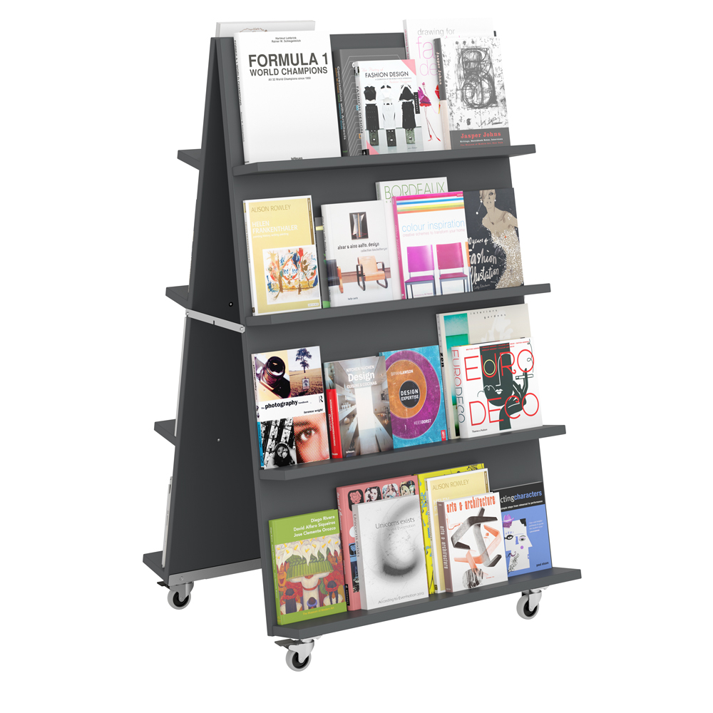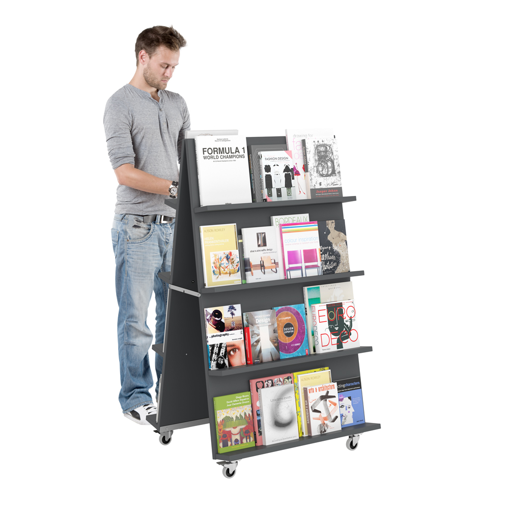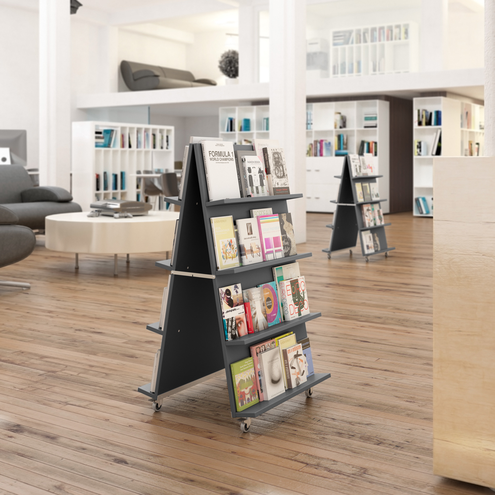 Med vår mobila A-exponering kan du visa böcker på ett iögonfallande sätt även i större, öppna områden eller entréer. Använd dem enskilt eller flera intill varandra för att skapa en tvåsidig exponeringsvägg.