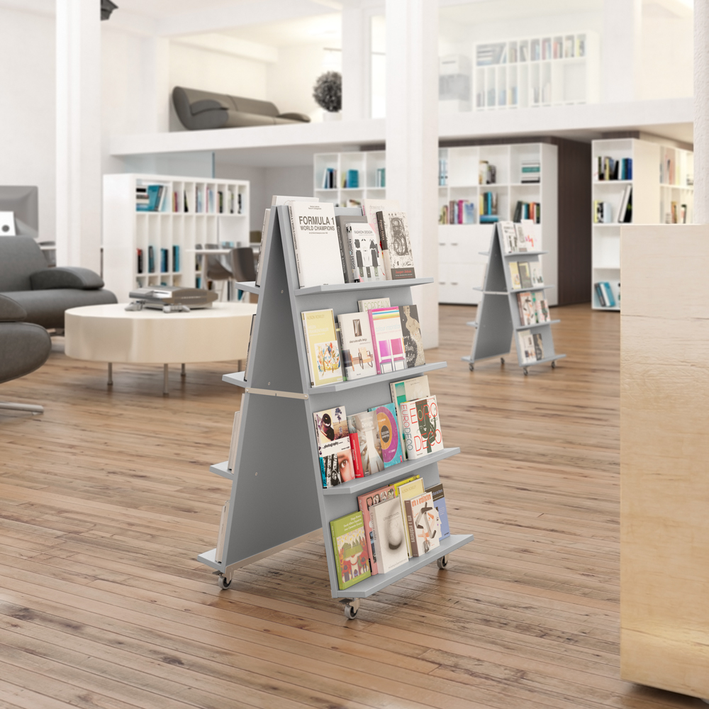 Med vår mobila A-exponering kan du visa böcker på ett iögonfallande sätt även i större, öppna områden eller entréer. Använd dem enskilt eller flera intill varandra för att skapa en tvåsidig exponeringsvägg.