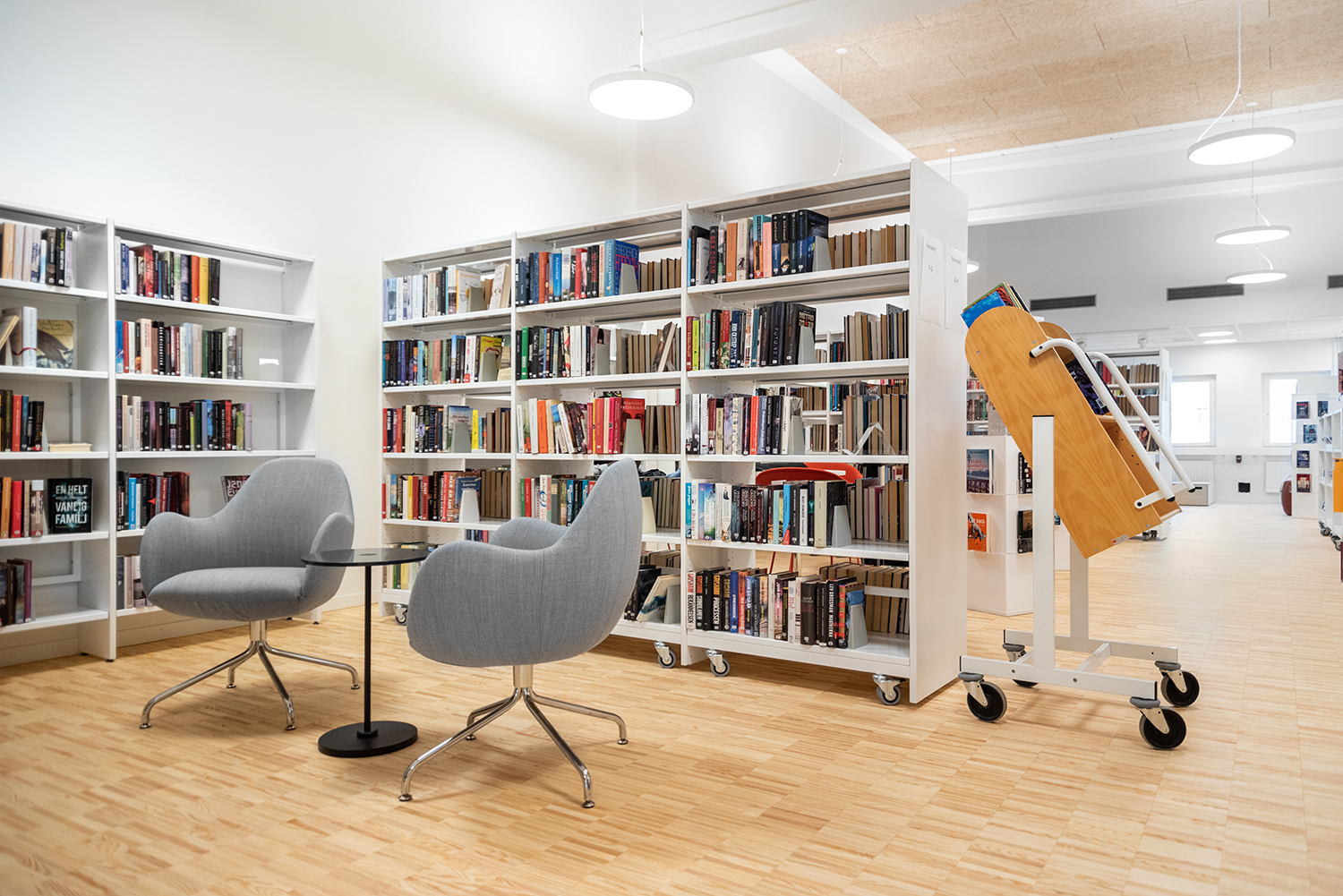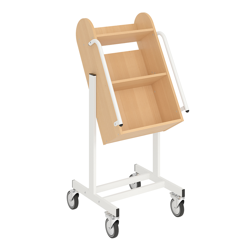 Bokvagnens lutning säkerställer effektiv förvaring och ger god översikt över de böcker du vill hantera.