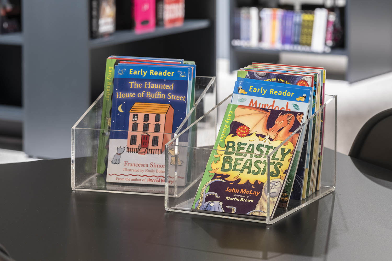 Använd fristående på bord, disk eller i hylla.