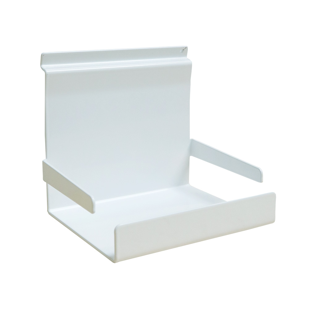 Hållare i metall lämplig för spårade hyllgavlar och Quattro exponeringstorn.
