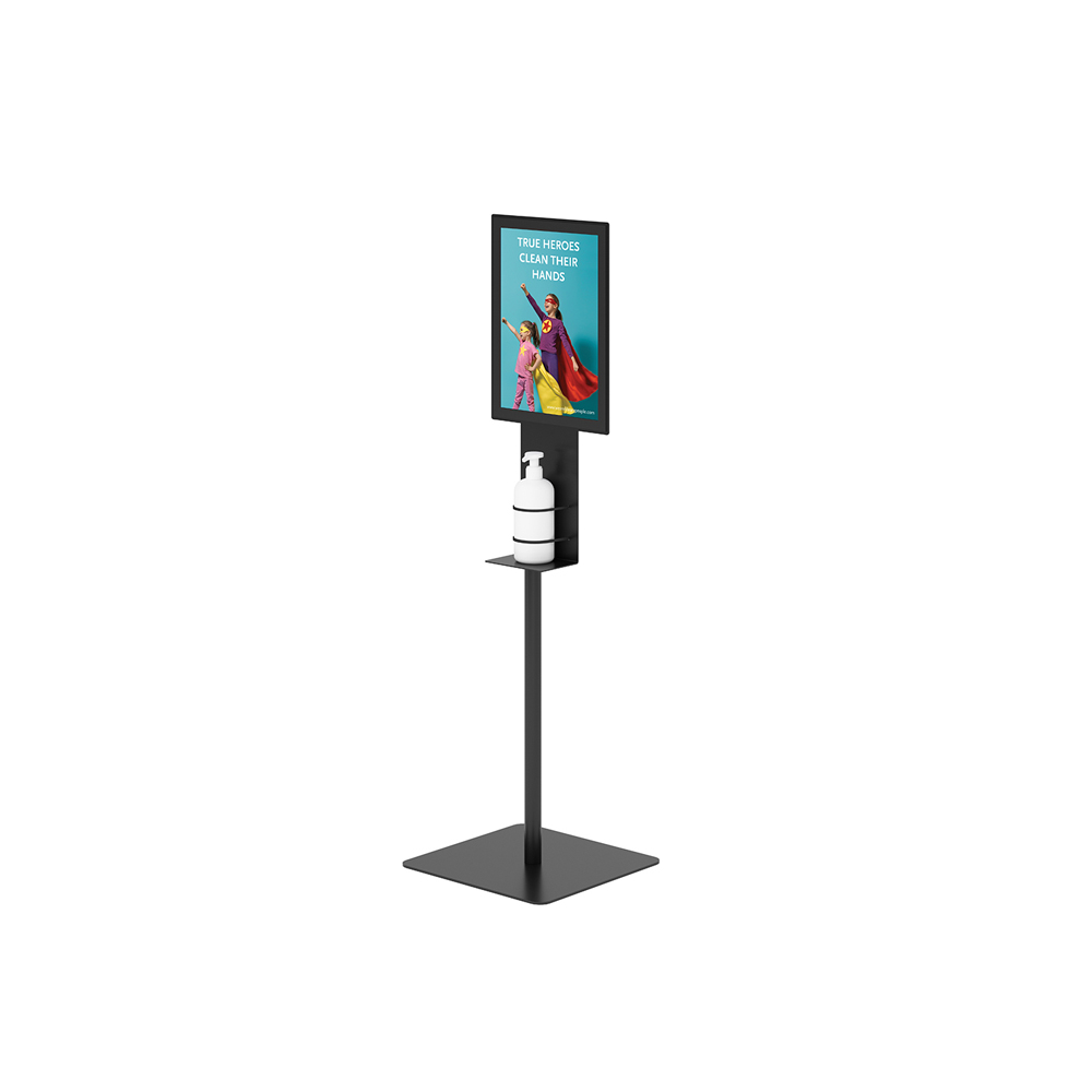 Placera exv. golvstället i entré, reception, låne- och informationsdisk samt vid sökstationer runtom i biblioteket för att säkerställa god handhygien och förhindra smittspridning.