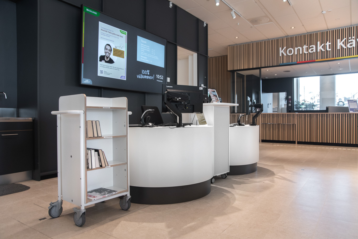 Denna bokvagn kan användas som ett mini-hyllsystem som kan flyttas runt i biblioteket efter var den behövs.