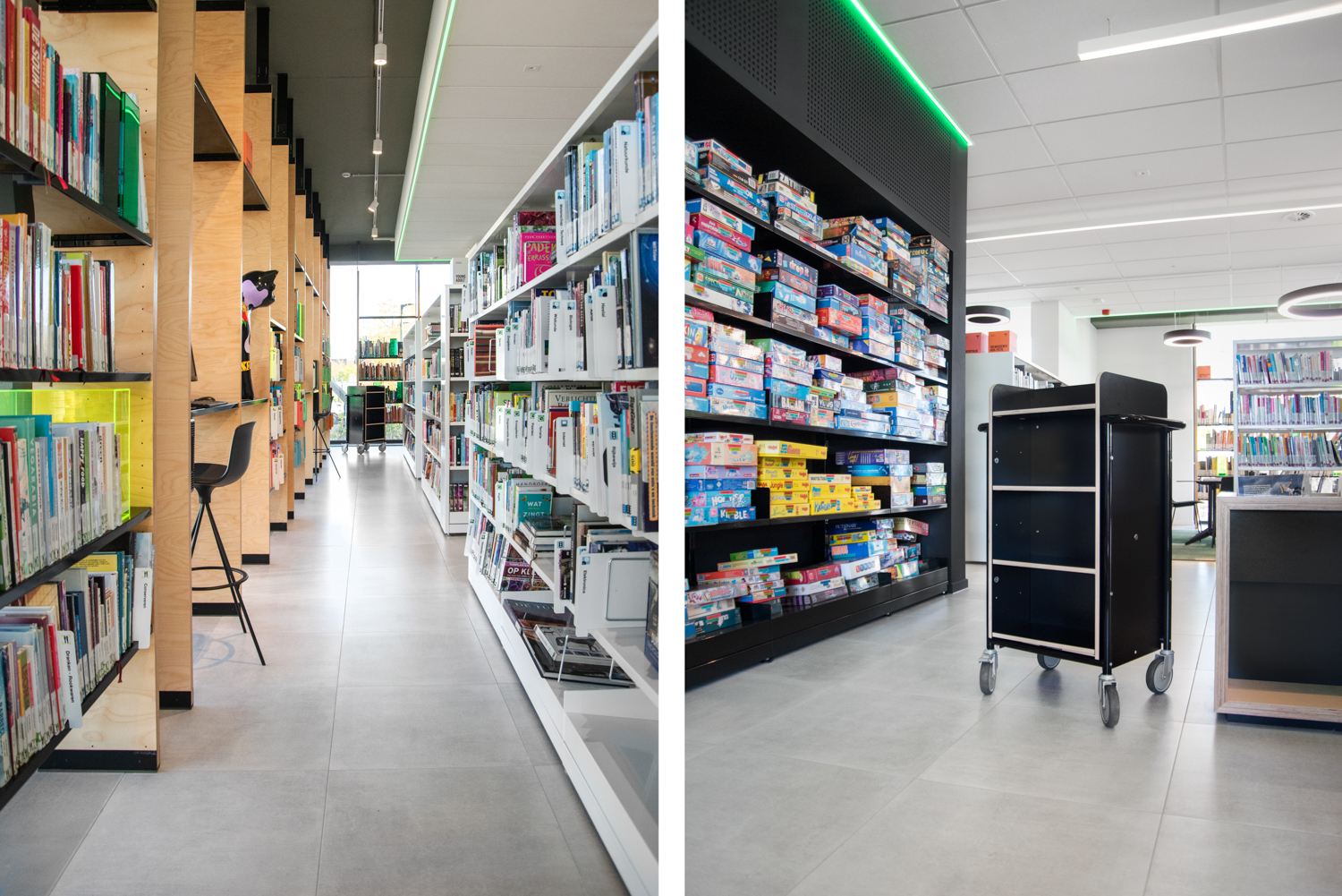 Vi talar laminerad björkplywood; här med synliga kanter. Allt för att få en såväl tålig yta som hållbar konstruktion. Perfekt för de mest krävande biblioteksmiljöerna!