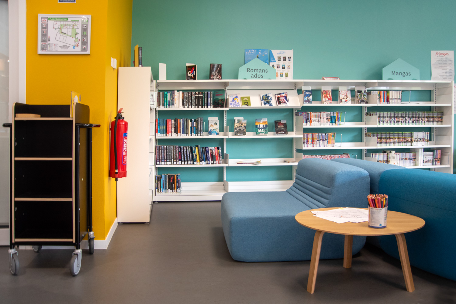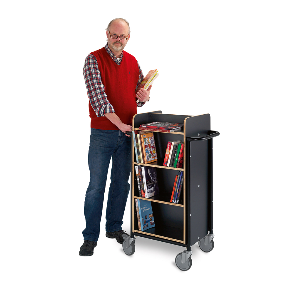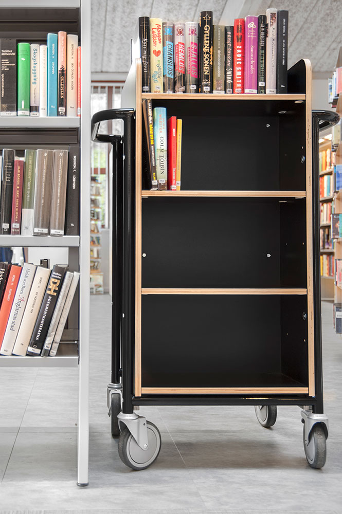 Denna bokvagn kan användas som ett mini-hyllsystem som kan flyttas runt i biblioteket efter var den behövs.