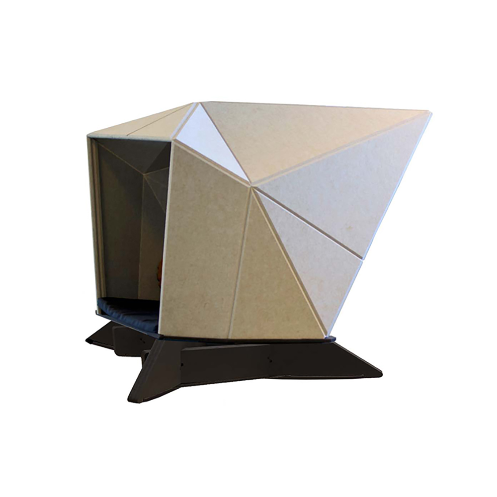 HabiCave är en dansk design skulpterad med inspiration från japansk origami. Enkelhet och omtänksam estetik talar till sinnena, och det akustiska materialet inte bara hjälper till att reducera störande ljud inne i krypinet utan också i rummet.