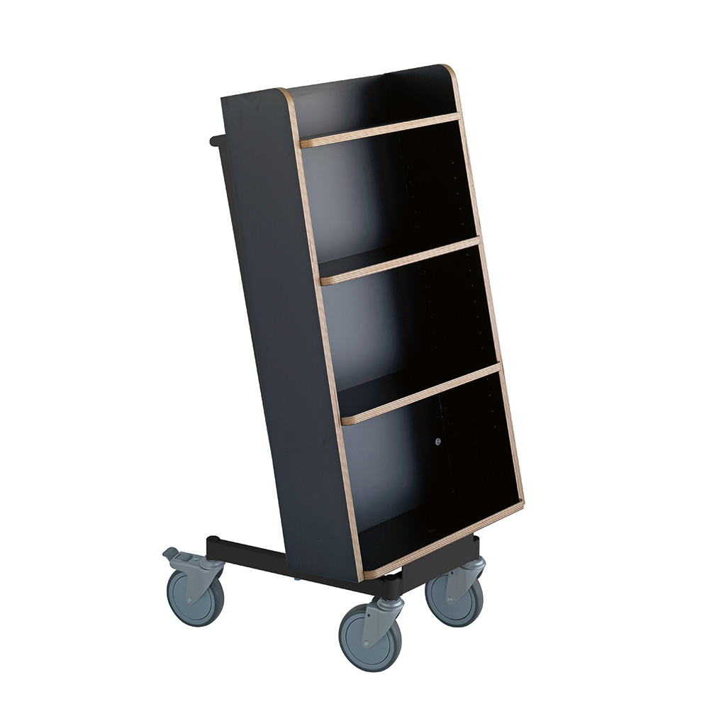 Bokvagnens lutning säkerställer effektiv förvaring och ger god översikt över de böcker du vill hantera.
