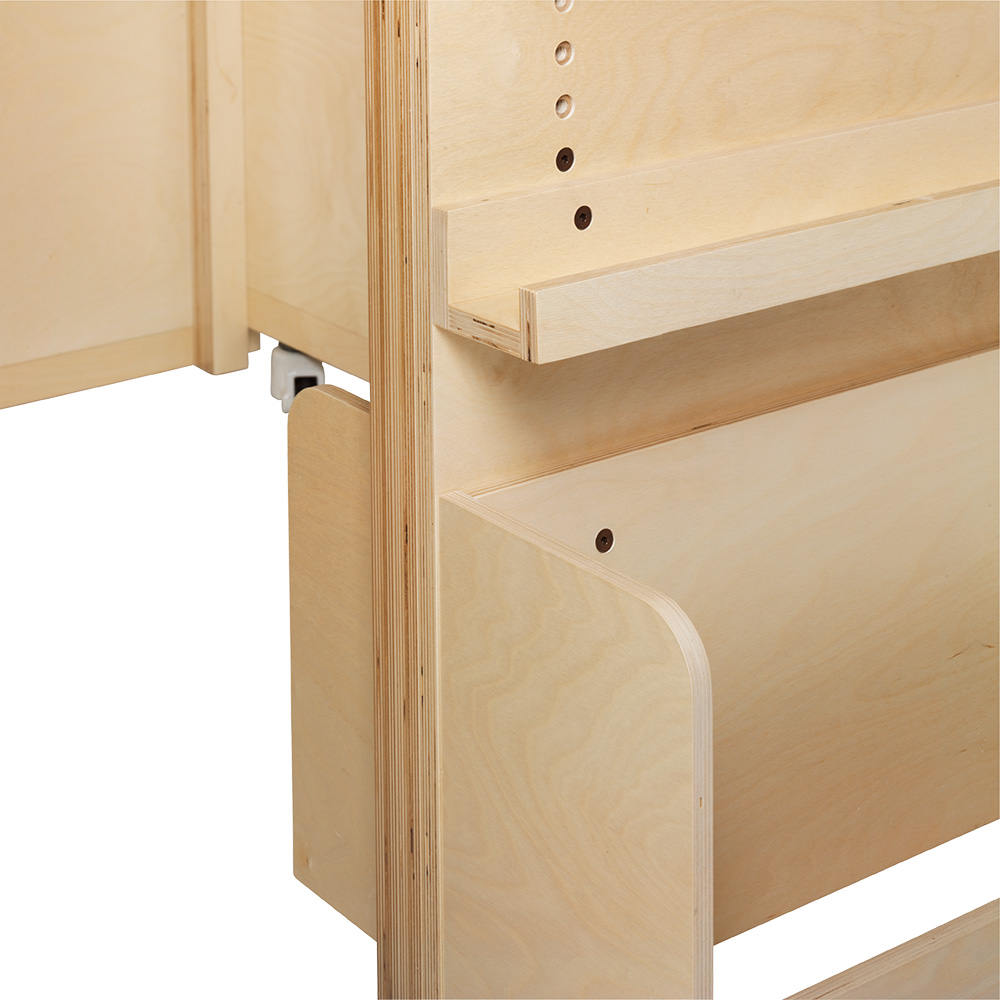 Hyllplan och tråg kommer i två olika bredder för att passa bakre väggelementets in- och utsida.