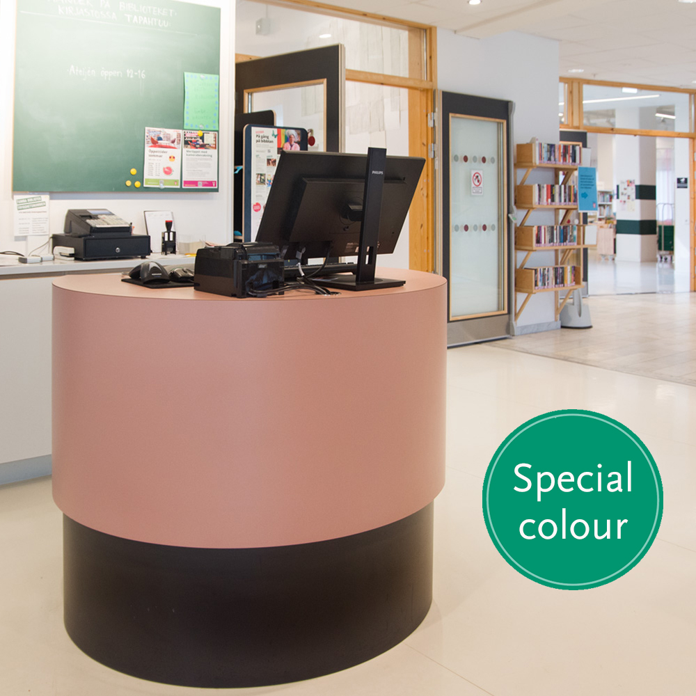 Idealiska informationsdiskar och arbetsstationer för större bibliotek eller som mottagningsdiskar för skolbibliotek.