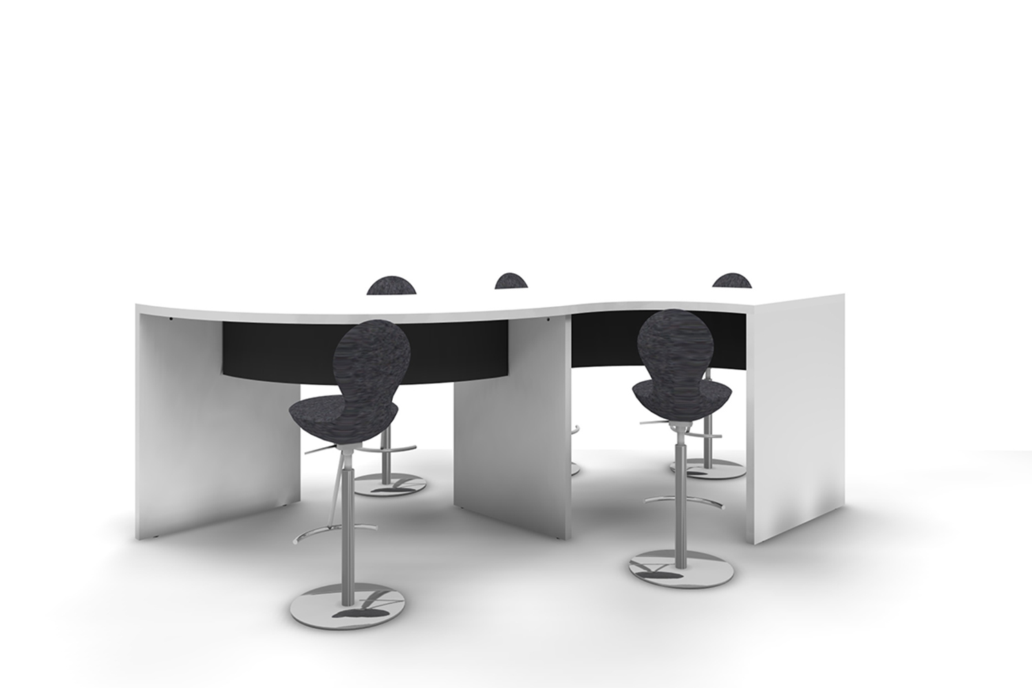 Twin: två svängda bord i S-form med frontpanelen placerad när mitten, så att bordet kan användas från bägge sidor.