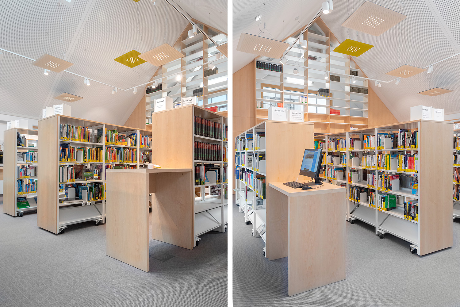 Borden kan användas för att skapa spännande och funktionella arbetsmiljöer i biblioteket, för både sittande och stående.