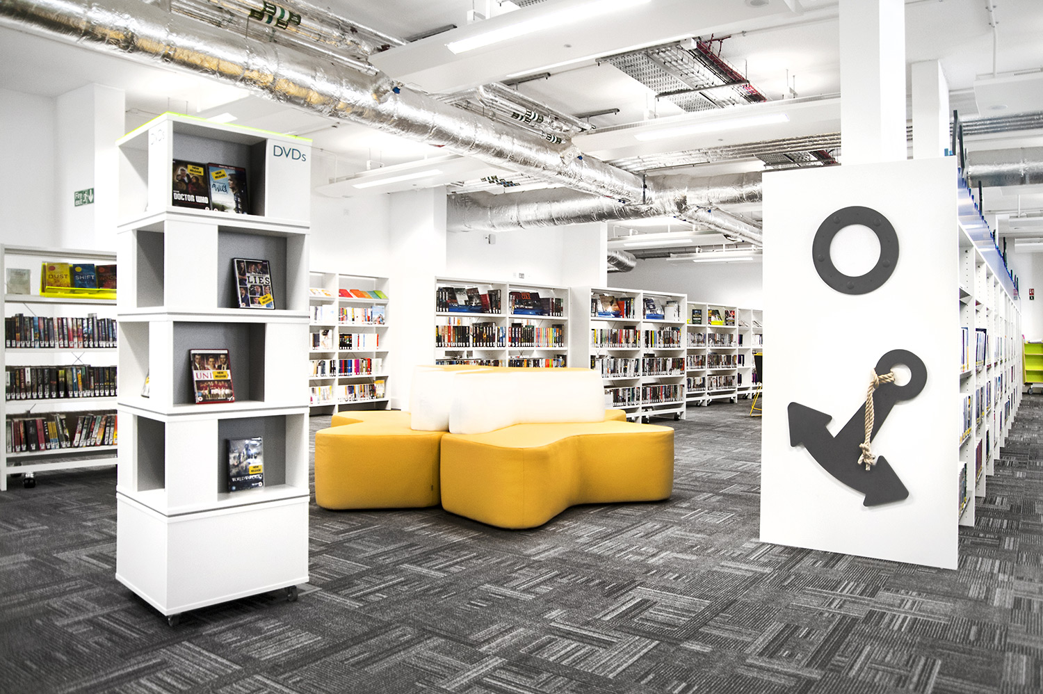 Thedesignconcept ltd. har bistått med stimulerande och inspirerande möbler, prylbarer och ny digital teknik för biblioteket. Ett antal datorer med internetuppkoppling har gjorts tillgängliga för allmänheten, medan prylbaren gör det möjligt att ladda telefoner och bärbara datorer i bibliotekets "tysta" studieområde.