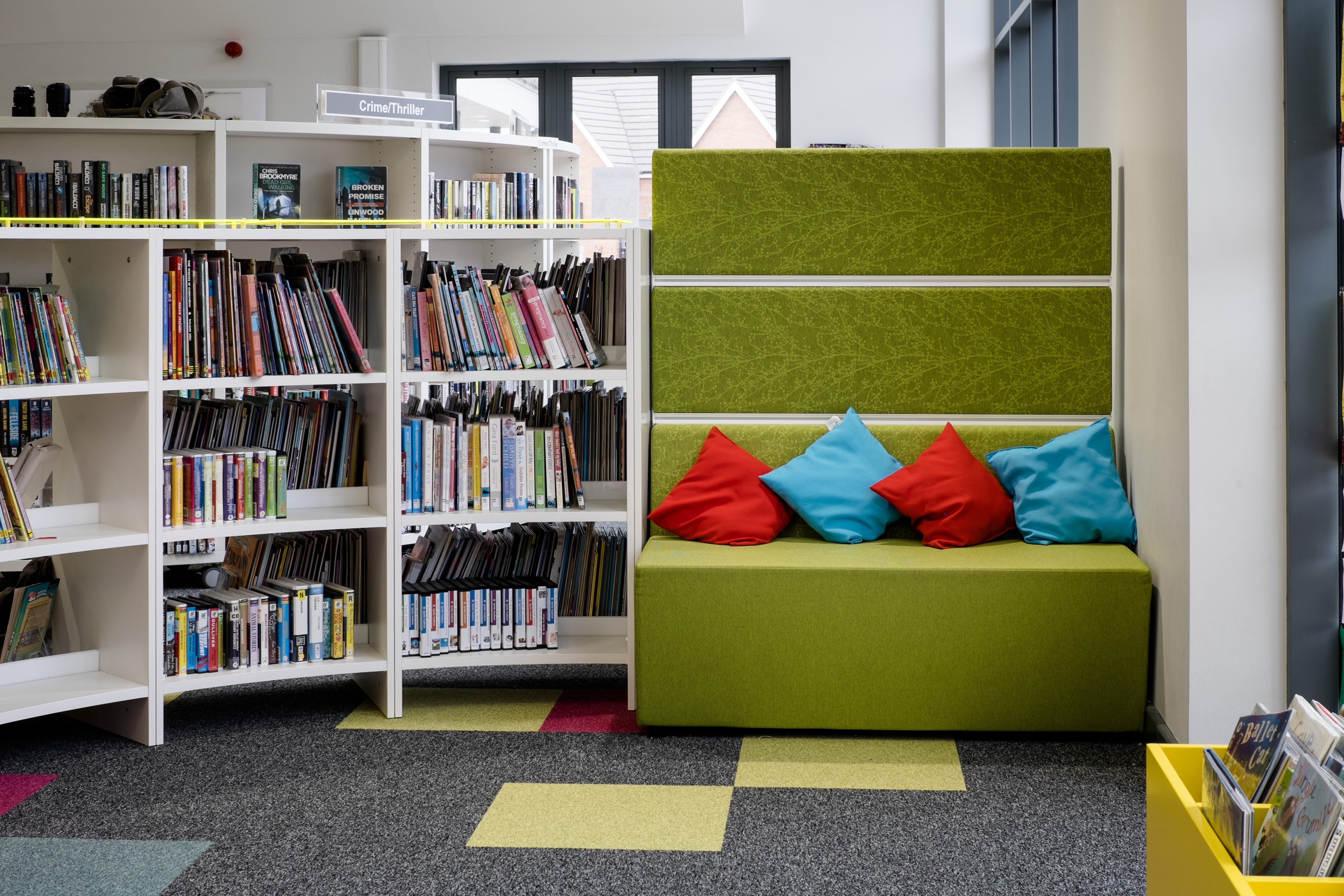 Moulton behövde ett bibliotek som var öppet, färgglatt och spännande, som kunde omfamna alla besökare – från femåriga barn till äldre demenssjuka.