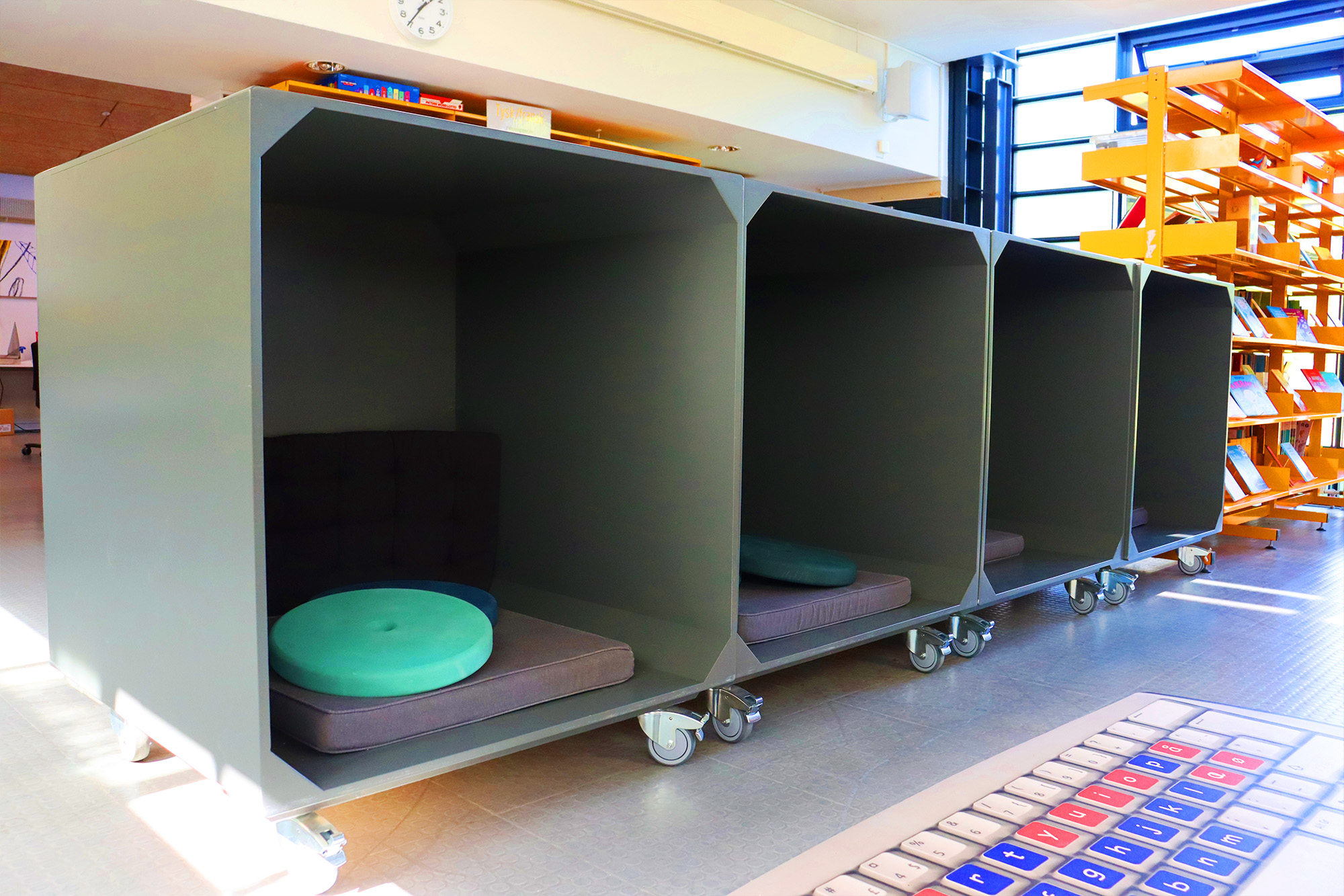 ”Kuddarna bidrar till att skapa många extra sittplatser på vårt bibliotek och vi kan samla eleverna till olika aktiviteter. En kudde avgränsar dessutom den plats eleven anvisats och det blir då lättare för den enskilda eleven att hålla koll på sin plats.”