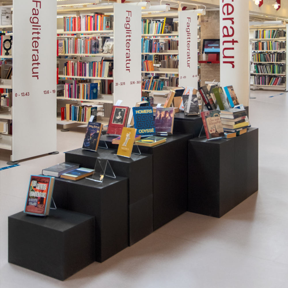 Akrylställ för exponering av alla storlekar av böcker, media, information och litteratur.
