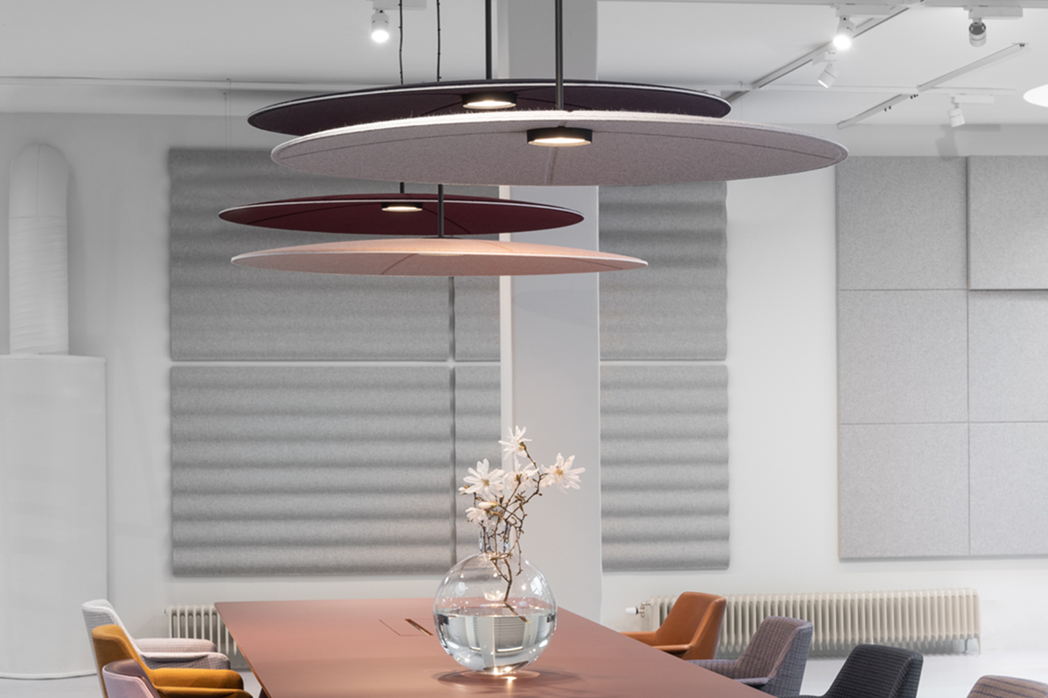 Lampan Lily representerar ett helt nytt perspektiv på akustiska produkter. Lampan tillverkas av gjuten filt, som ger den en ljudabsorberande funktion på ett så välintegrerat sätt att du knappt märker det.