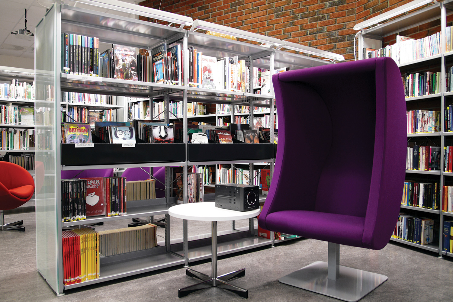 Lunas karakteristiska månform har en viktig ljudavskärmande funktion. Inga störande ljud varken in eller ut. Ett ”tyst” rum för besökare som bara söker avkoppling eller ett upplevelserum för de som söker inspiration från talböcker och musik. Idealisk för bibliotek eller andra lärmiljöer; ljudet stannar kvar i fåtöljen och stör ingen annan.