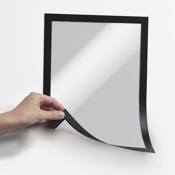 Magnetramarna (Duraframe® Magnetic) fäster på magnetiska underlag såsom hyllgavlar av metall, whiteboardtavlor etc.