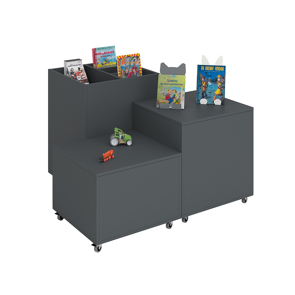 Perfekta för att skapa små och stora öar i biblioteket. Den enkla formen passar bra på de flesta platser och gör att böcker verkligen syns.