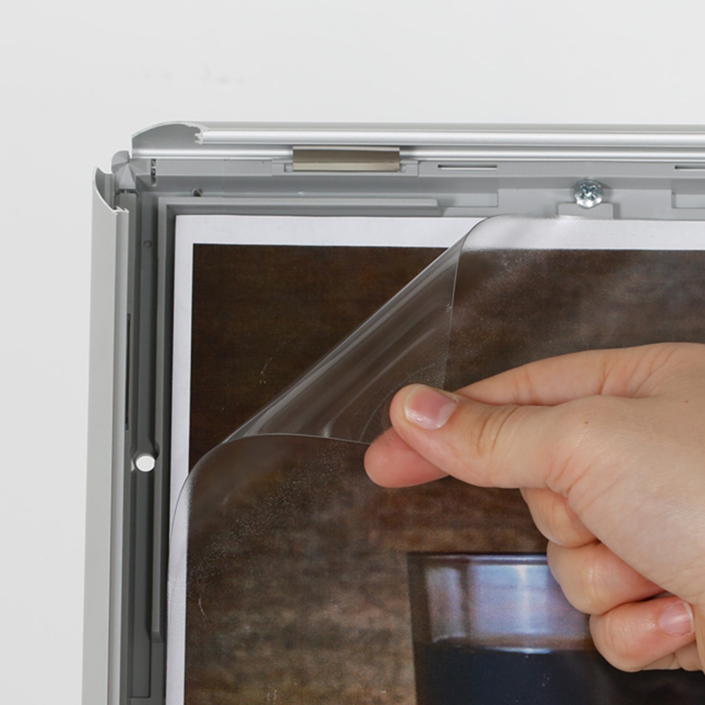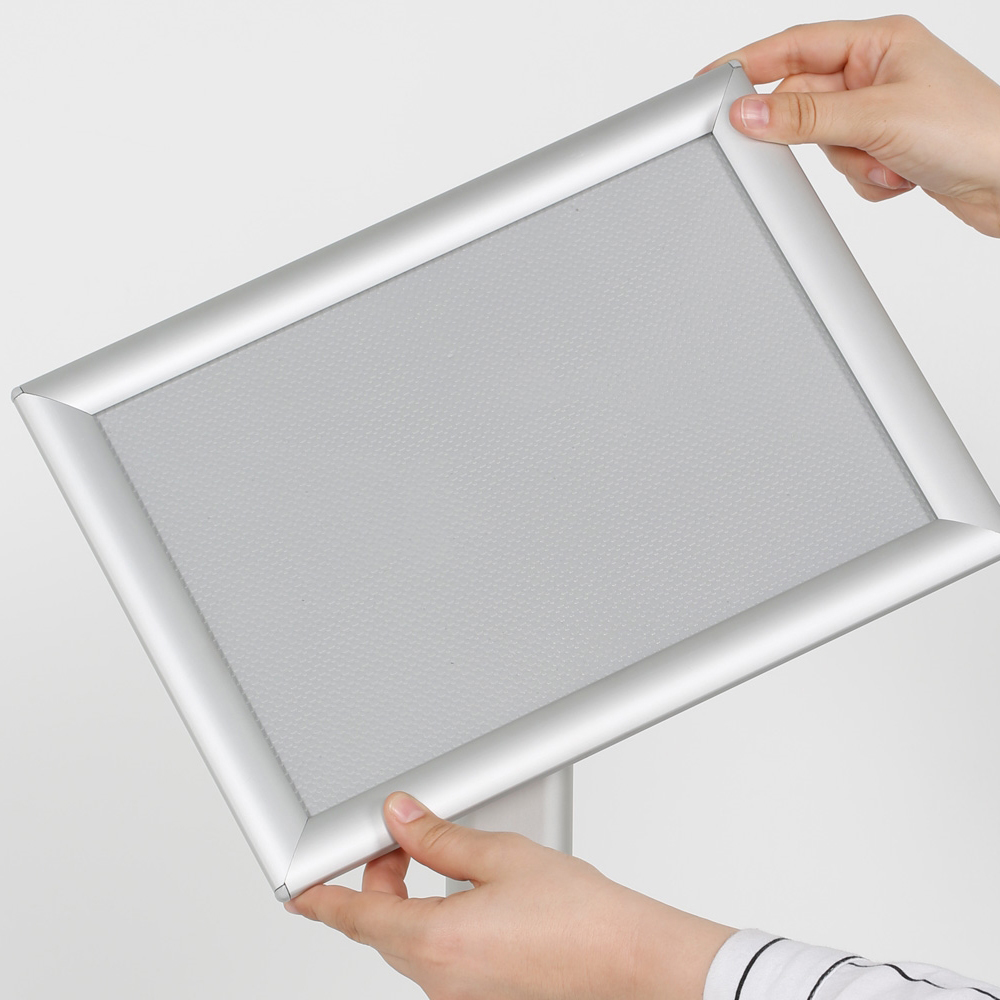 Klickram med 25 mm profil. Stabilt ställ med anti-reflexbehandlad infohållare i plast. Stället är användbart överallt i bibliotekets lokaler samt i entré/reception.