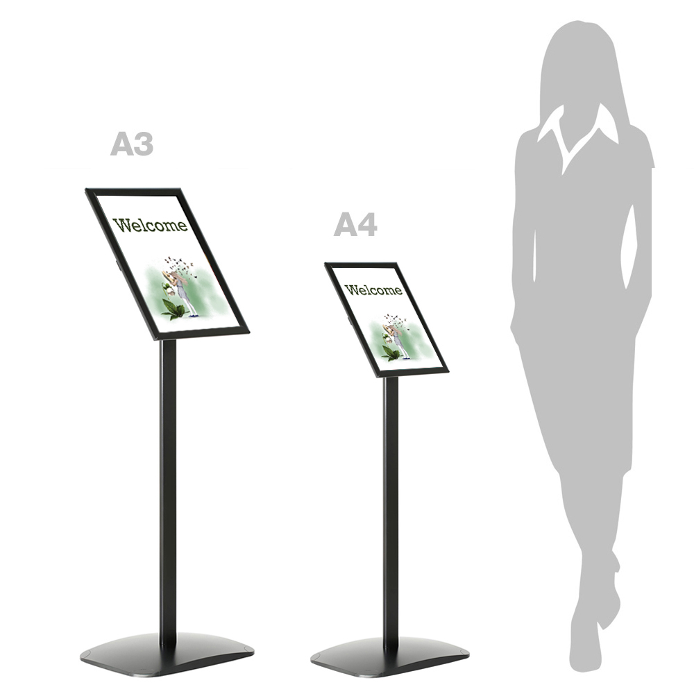Klickram med 25 mm profil. Stabilt ställ med anti-reflexbehandlad infohållare i plast. Stället är användbart överallt i bibliotekets lokaler samt i entré/reception.