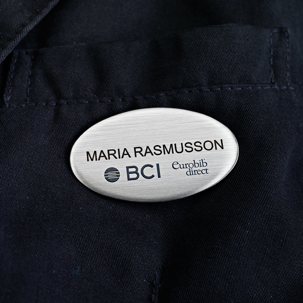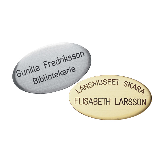Elegant namnbricka med magnetfäste vilket gör att man inte behöver ta hål i kavajen eller skjortan.