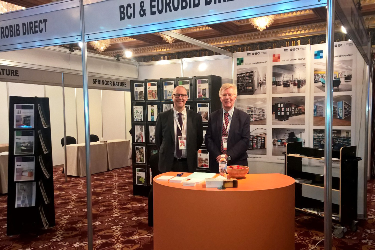 Våra representanter på plats; Kjell Granelli, exportchef på Lammhults Biblioteksdesign A/S och Nils-Ove Johansson, regional säljchef presenterade våra inredningslösningar för bibliotek.