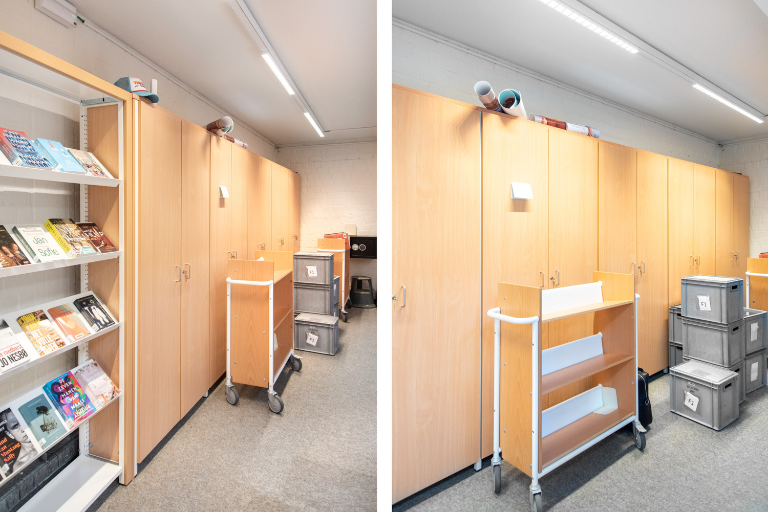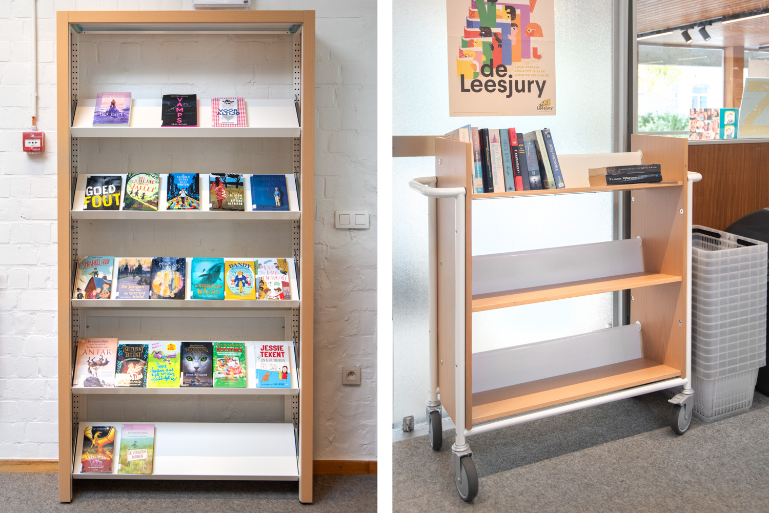 Denna bokvagn kan användas som ett mini-hyllsystem som kan flyttas runt i biblioteket efter var den behövs.