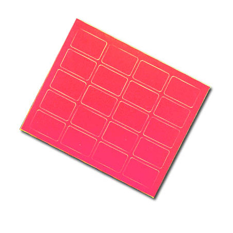 Självhäftande, utstansade färgmarkeringar i ark för att märka bokryggar, CD/DVD-emballage m.m.