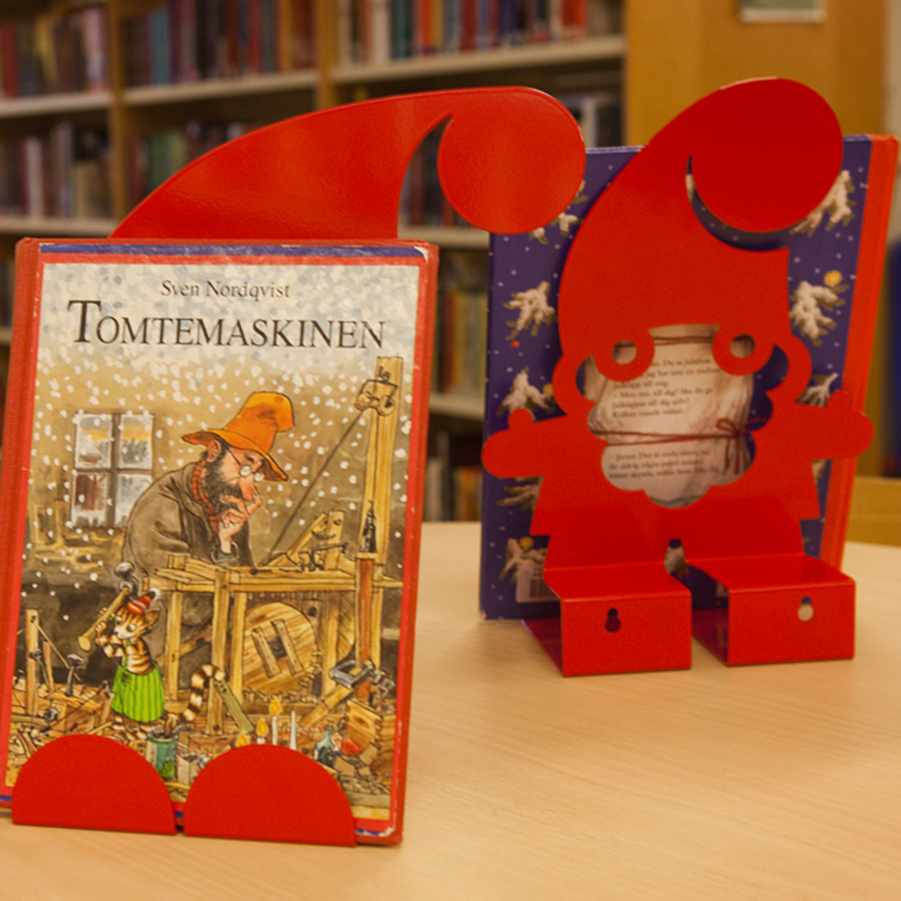 Skapa en god stämning med Santa. Du kommer garanterat att få besökarnas uppmärksamhet med Santa exponeringsställ i biblioteket som visar upp julens böcker och media.