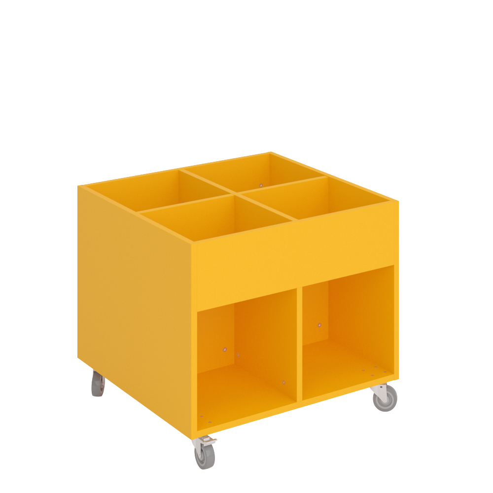 Sara Midi är ett bilderbokstråg med fyra exponeringsfack överst och fyra förvaringsfack under. Lämpligt för barn.