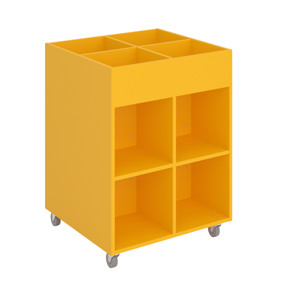 Sara Midi är ett bilderbokstråg med fyra exponeringsfack överst och fyra förvaringsfack under. Lämpligt för barn.