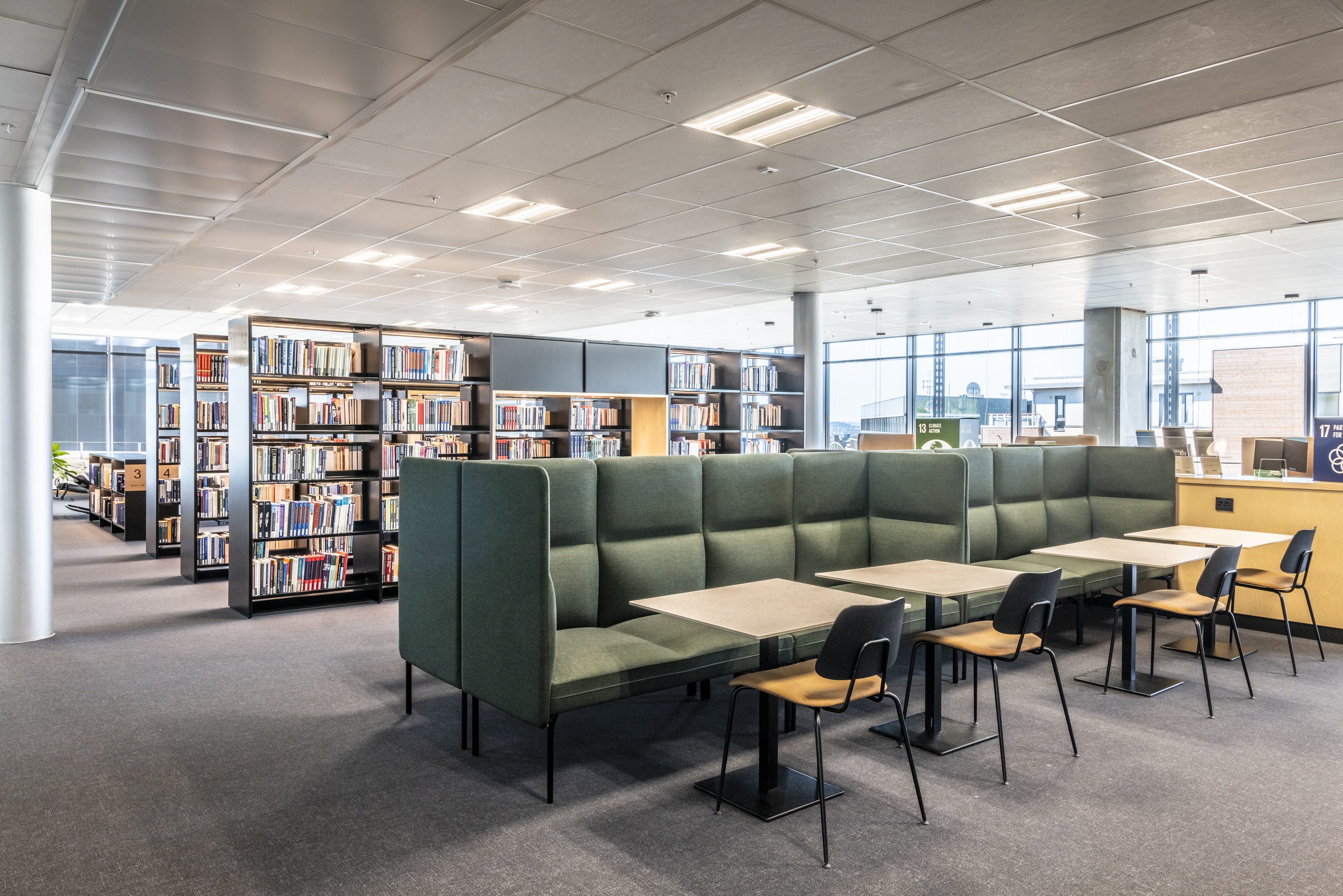 Med sina olika rygghöjder som bidrar till att reducera störande ljud tar serien hänsyn till de akustiska utmaningar som kan finnas på biblioteket. Som tillval finns en ram med eklameller som hjälper till att dela upp rummet och skapa ett avgränsat område – utan att man förlorar överblicken.