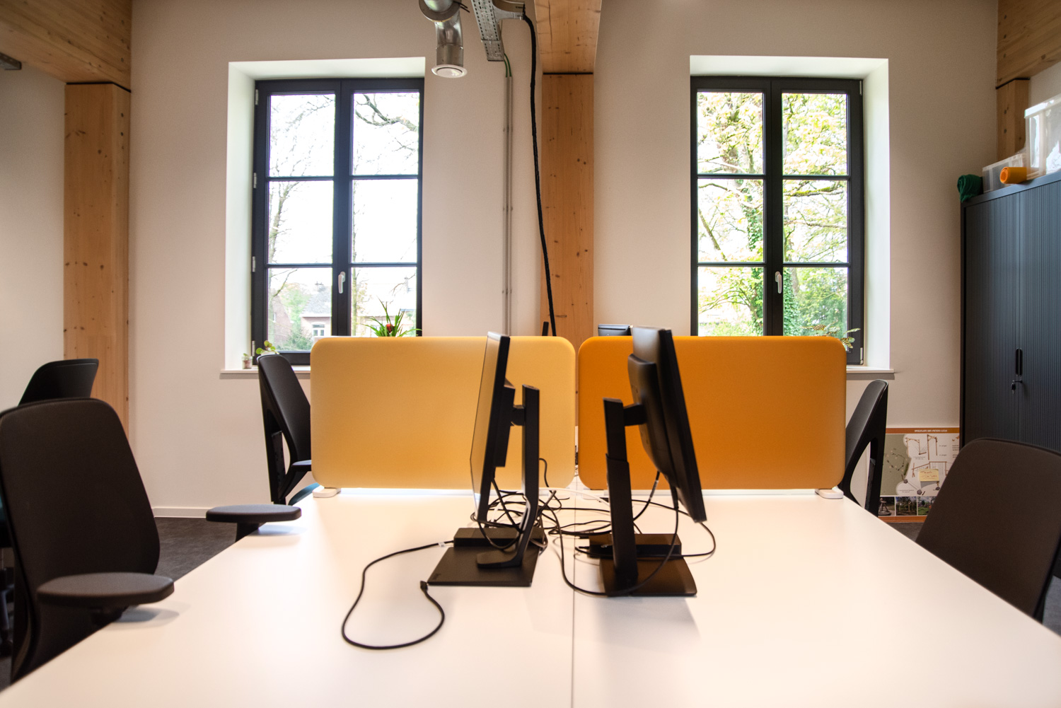 Rumsavdelare och ljudabsorbenter i ett för miljöer med hög ljudbelastning ger den högsta möjliga ljudabsorption (ljudklass A).