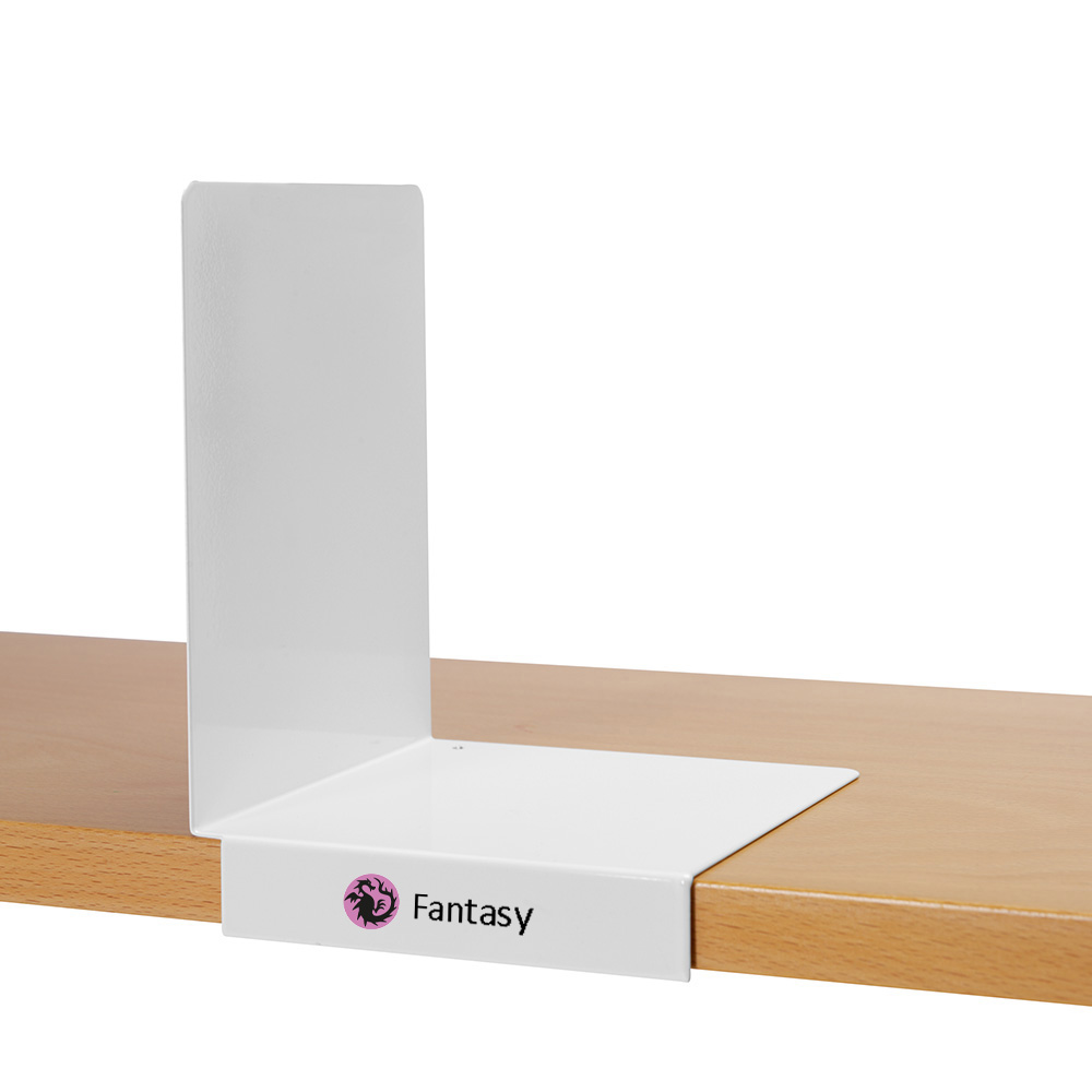 Praktiskt bokstöd med framkant (stopper) som håller stödet på plats samtidigt som framkanten med fördel kan användas för skyltning/märkning.