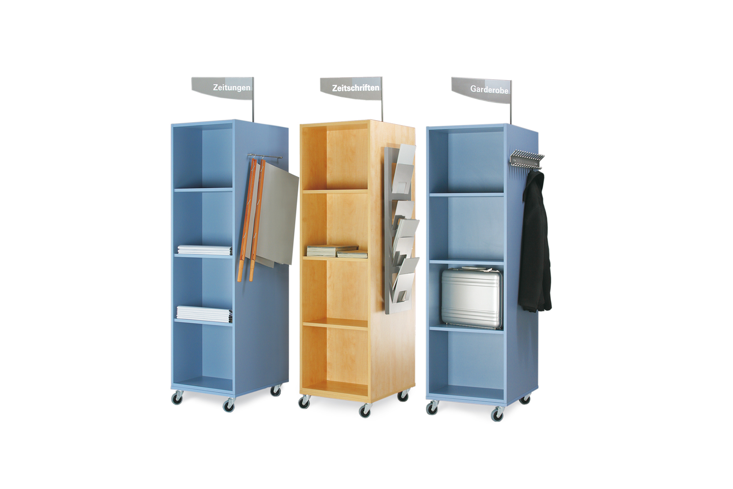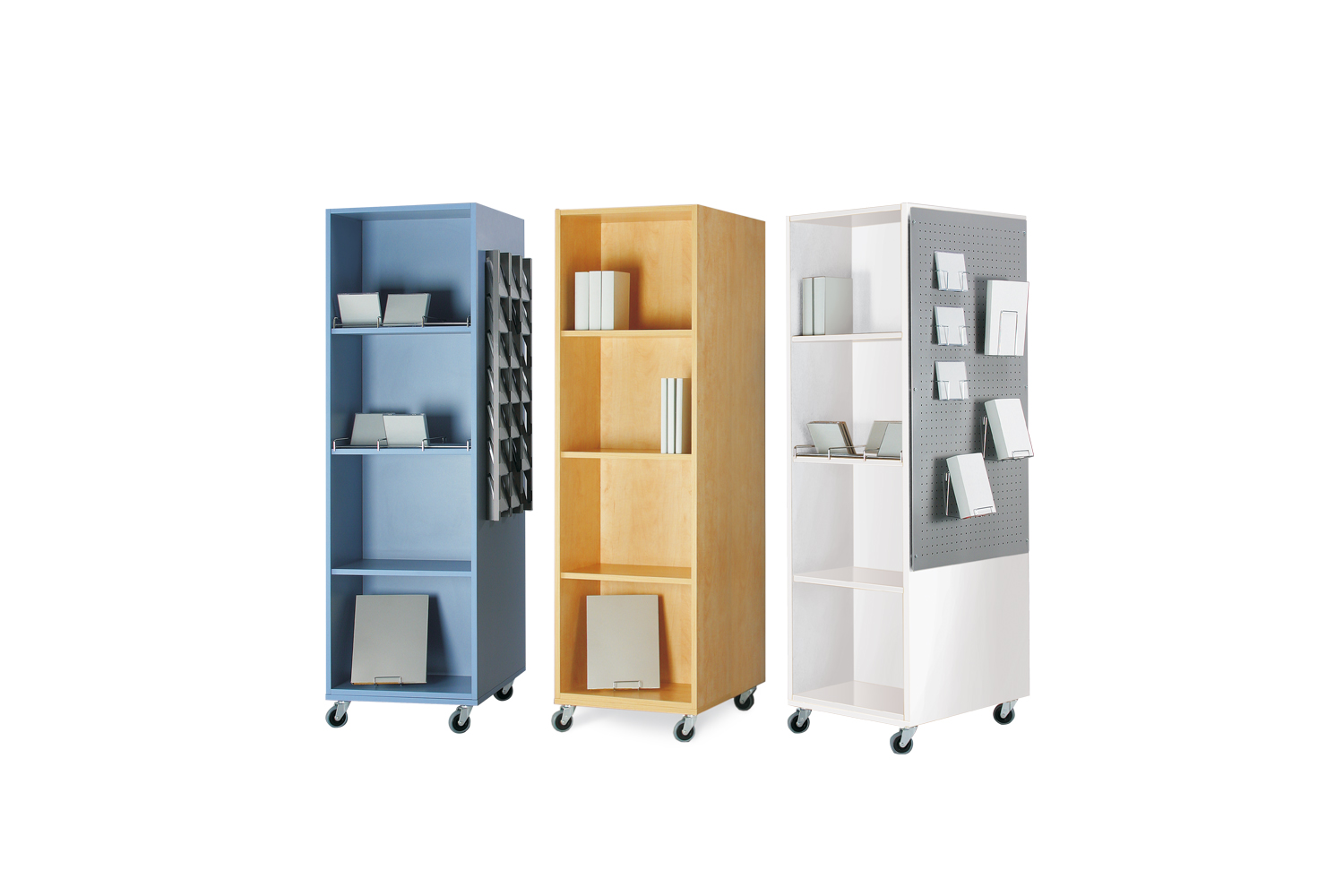 Diverse andra tillbehör och funktioner såsom skyltningsflagga, hållare för CD / mappar / pocketböcker och bokexponering passar till tornen.
