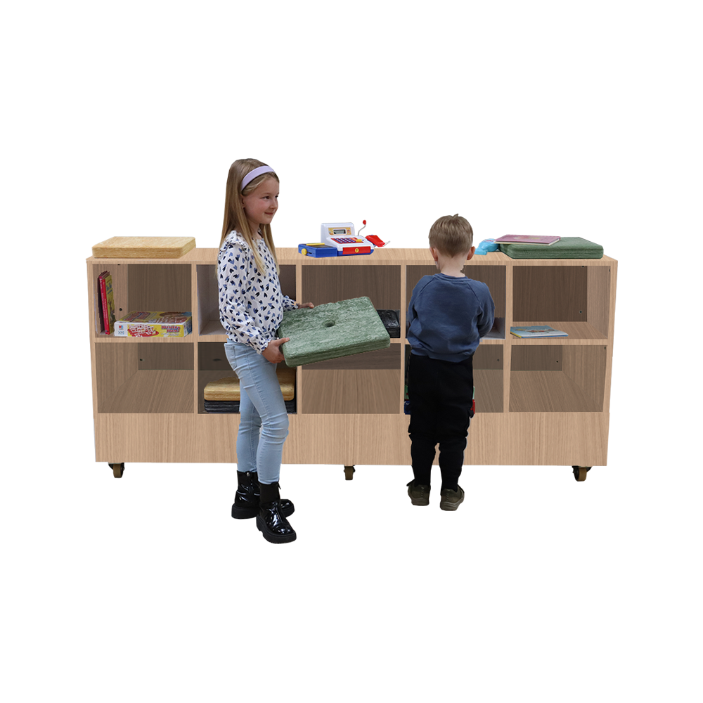 Verona har en minimalistisk och estetiskt tilltalande design som möjliggör att flera enheter kan ställas tätt intill varandra eller direkt mot en vägg. På baksidan finns gott om utrymme för förvaring av till exempel sittkuddar, spel, böcker och leksaker, vilket ger utrymme för kreativa lösningar. Det översta podiet kan också vridas så att förvaringsfacken vänds framåt.