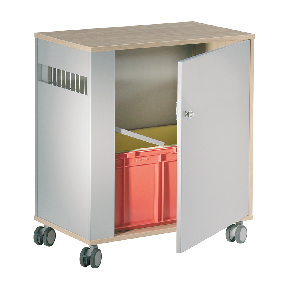 Mobilt och låsbart fack med öppningsbart sidoparti för enkel åtkomst. Invändigt försedd med bokback med mjuk botten.